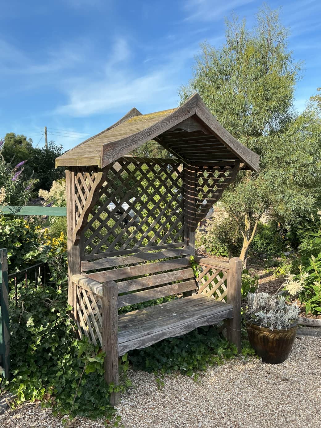 We also have a 2 bedroomed, central heated, spacious cabin sleeping up to 4 people. It has a lounge, kitchen, shower room and 2 toilets, plus its own covered patio with seating … and of course a lovely, tranquil wrap-around garden.